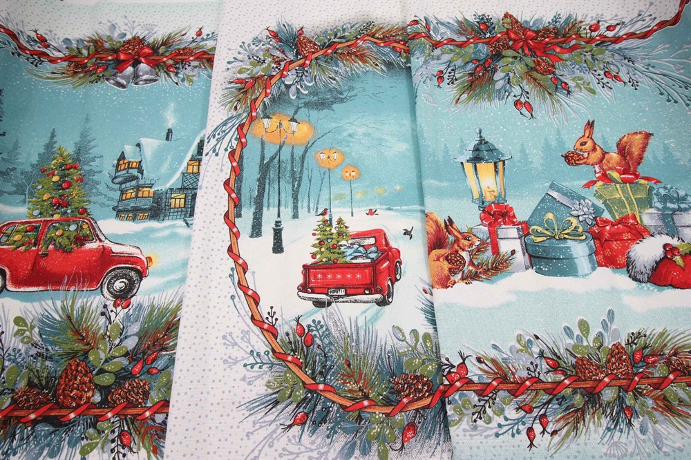 Новогодняя рогожка на скатерти и полотенца - это оригинальный и стильный аксессуар, который добавляет праздничного настроения вашему новогоднему столу.